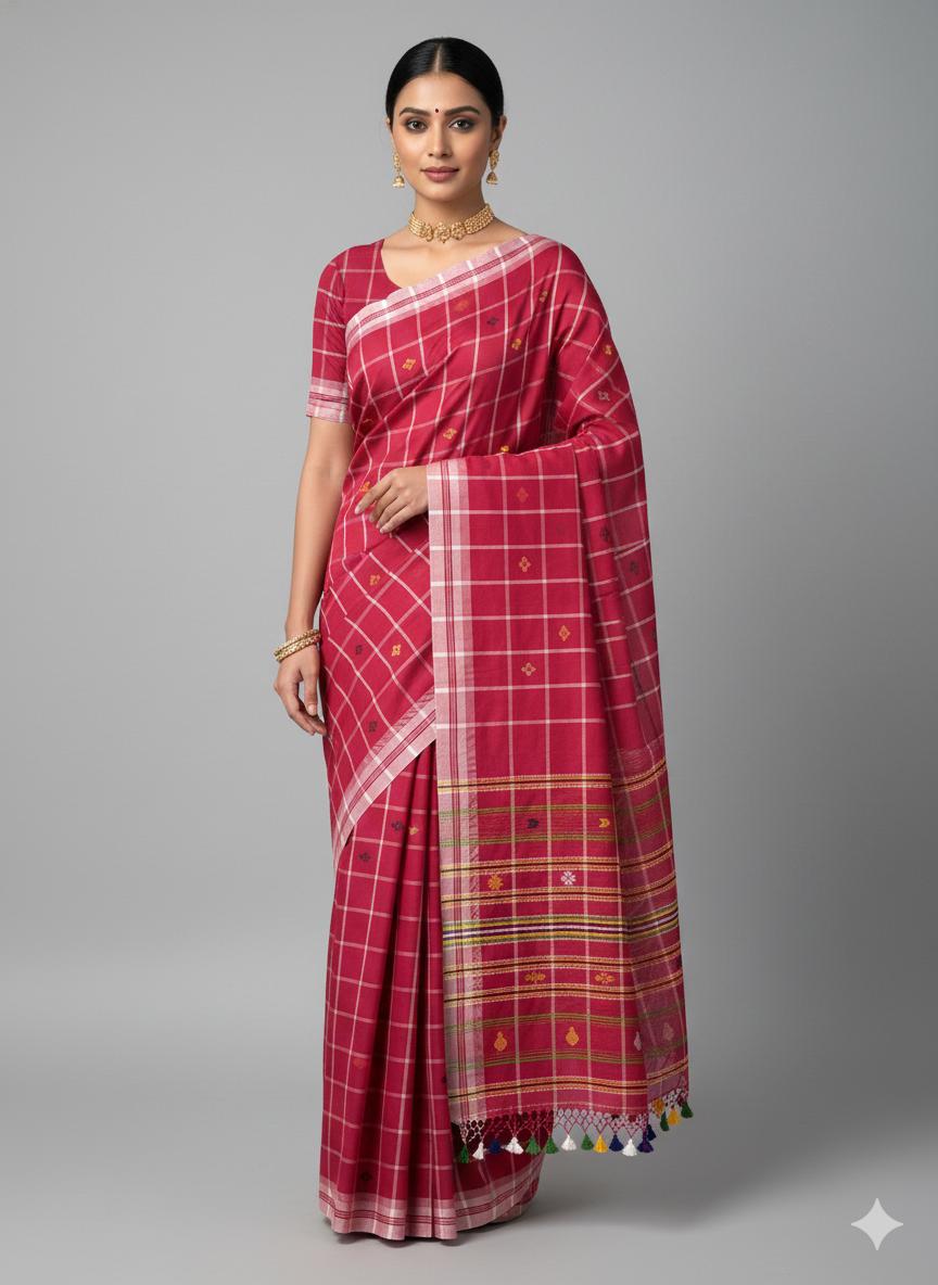 Perfect for women who appreciate handcrafted textiles and bold earthy tones, this saree is ideal for everyday elegance, cultural gatherings, office wear, and relaxed festive occasions. Style it with silver jewellery, handcrafted accessories, or a contrast blouse for a contemporary handloom look.